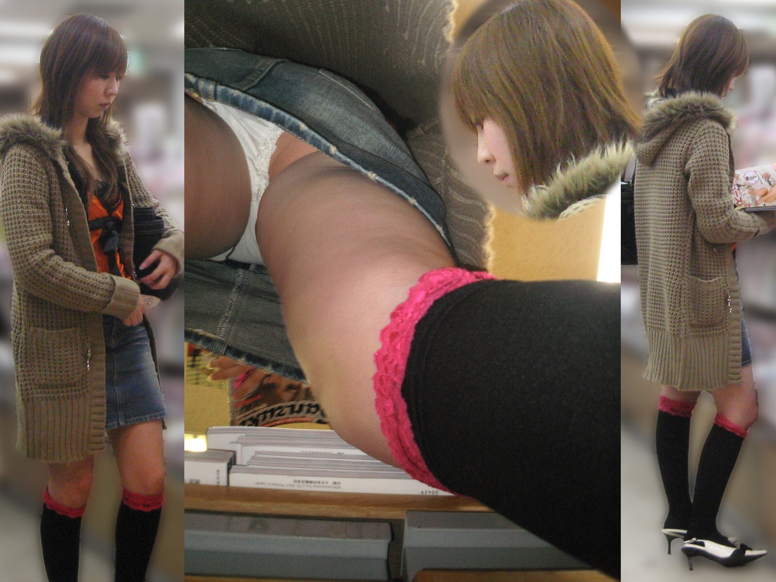 純白パンツでお出かけした街撮り素人達が覗き込まれた逆さ撮りパンチラ