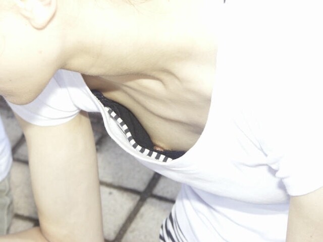 すぐ見える貧乳胸チラエロ画像