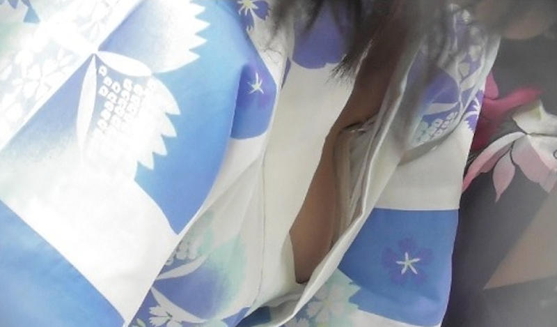 浴衣おっぱいのエロ画像 (胸チラとポロリ)