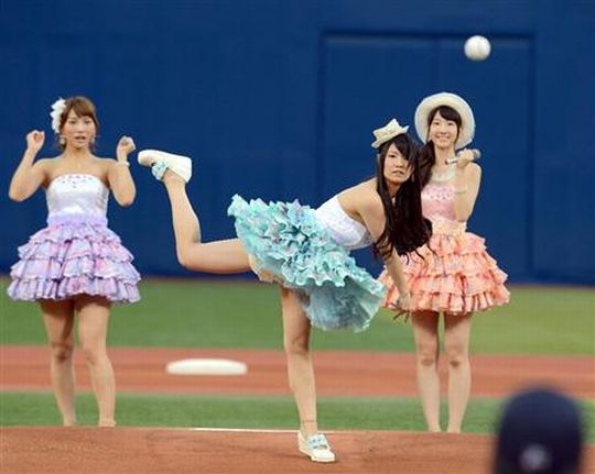 おっぱいや太ももやパンチラ見放題な芸能人の始球式がエッチ過ぎwww30枚
