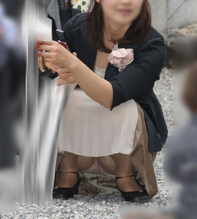 ベージュパンストのしゃがみと三角地帯